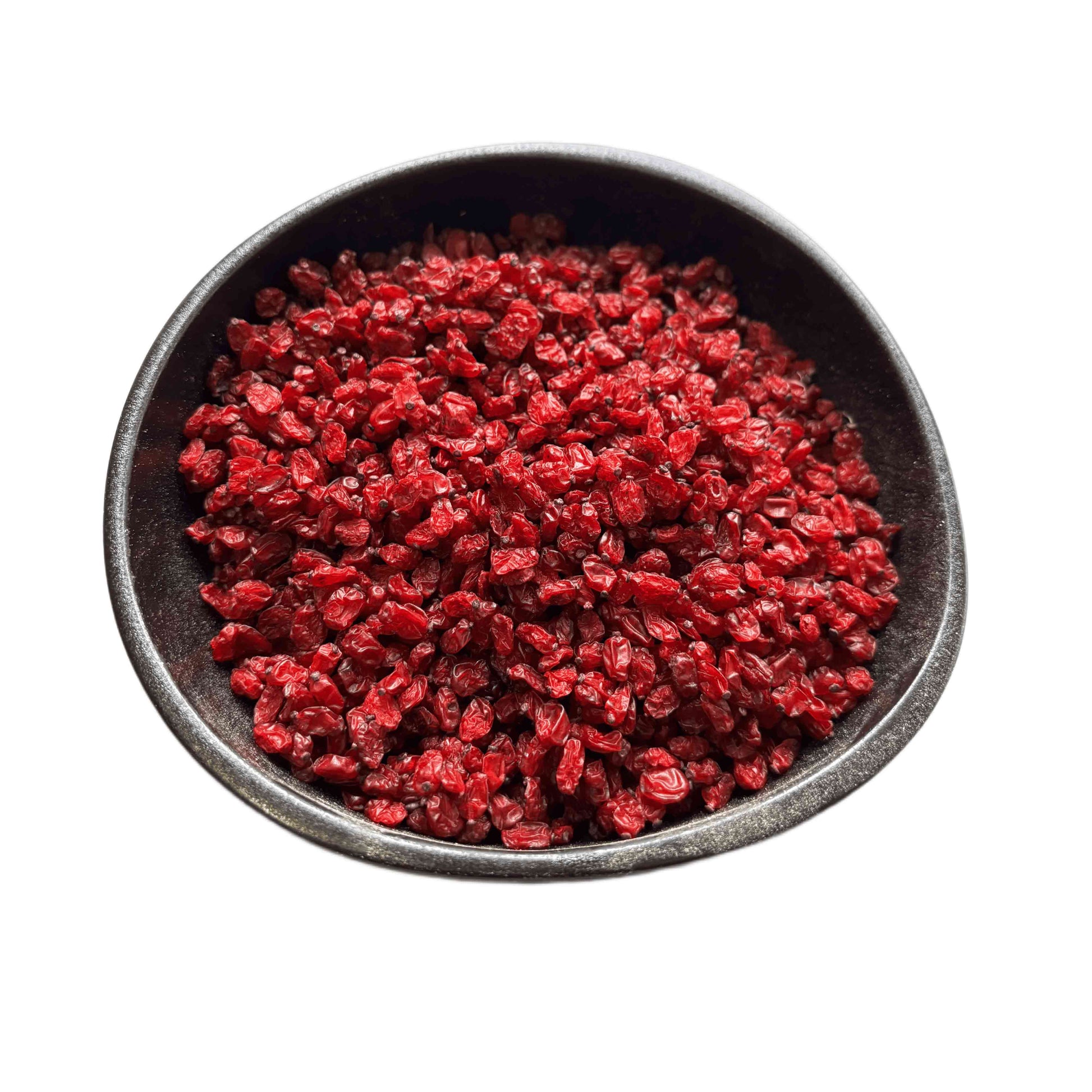 Berberitzen, im Persischen Zereshk genannt, sind kleine, säuerlich-fruchtige Beeren, die in Iran – insbesondere in der Region Khorasan – angebaut und geerntet werden. Sie werden nach der Ernte schonend getrocknet, um ihre natürliche rote Farbe, das intensive Aroma und den typischen Geschmack zu bewahren. Zereshk ist ein zentraler Bestandteil der persischen Küche und wird vor allem in Reisgerichten wie Zereshk Polo verwendet.