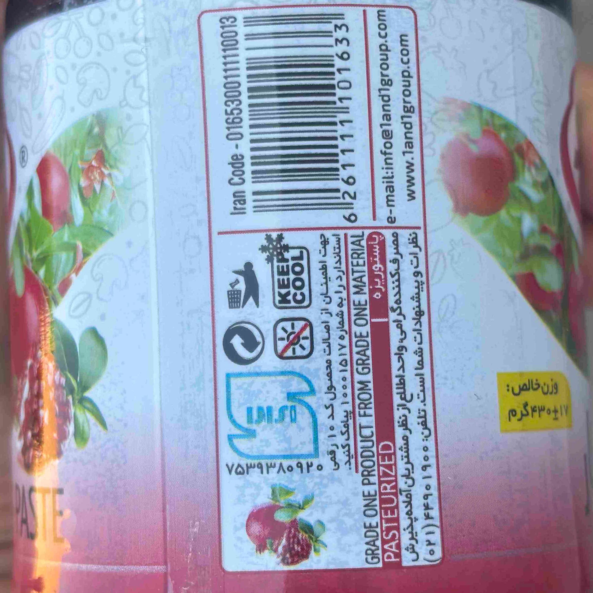 Der 1&1 Granatapfelsirup („Rob-e Anar“) wird im Iran von Dasht-e Morghab Co. hergestellt – einem renommierten Produzenten hochwertiger Fruchtextrakte. Hergestellt aus reifen Granatäpfeln höchster Qualität (Grade One), deren Saft traditionell eingekocht und auf mindestens 70 % Brix konzentriert wird. Das Produkt ist pasteurisiert und enthält keinerlei Zusatzstoffe, Zucker oder Konservierungsmittel.