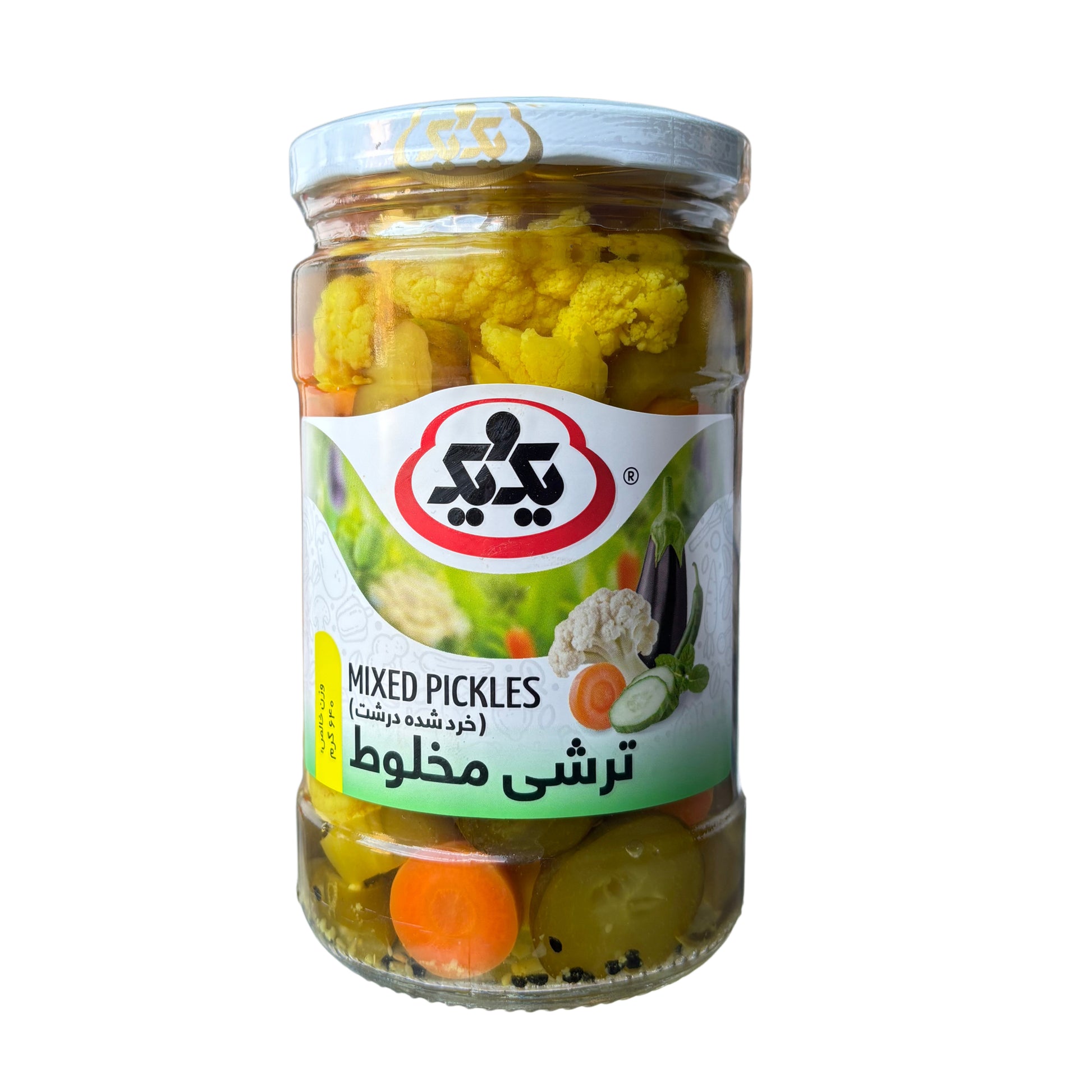 Diese traditionelle persische Spezialität „Torshi Makhlout“ (ترشی مخلوط) besteht aus sorgfältig ausgewähltem Gemüse in ganzer Stückform, eingelegt mit aromatischen Kräutern und Gewürzen. Hergestellt vom renommierten Produzenten 1&1, spiegelt sie die Vielfalt und Tiefe der persischen Küche wider. Verpackt in Gläsern à 640 g (Abtropfgewicht: mind. 355 g).