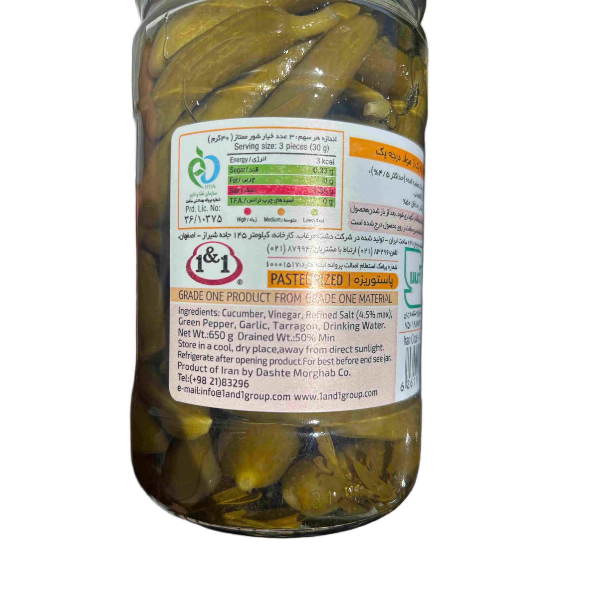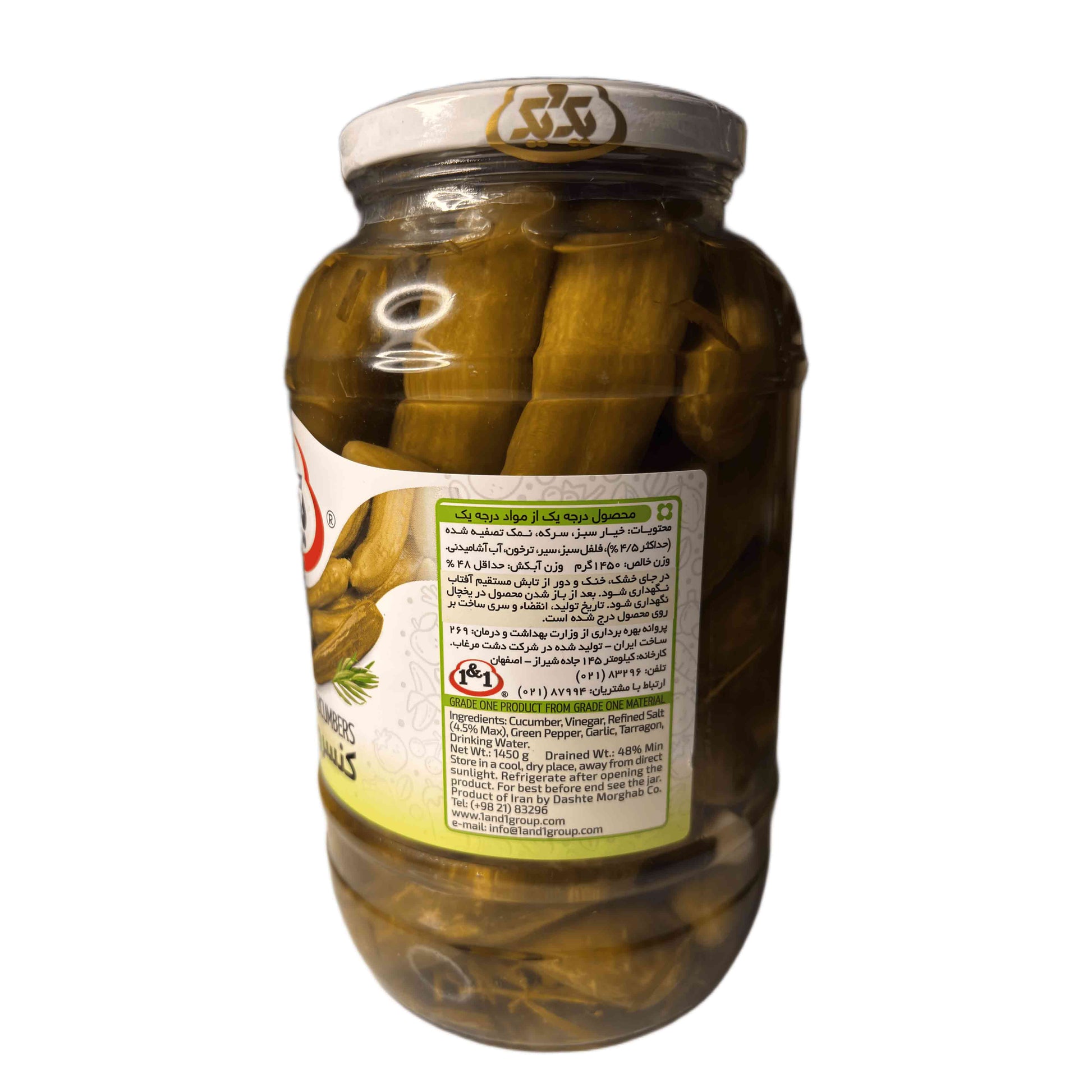 Diese knackigen Mini-Gurken stammen aus dem Iran und wurden nach traditioneller Art in Essiglake eingelegt. Hergestellt von Dashte Morghab Co., vereinen sie authentischen Geschmack mit hochwertigen Zutaten. Perfekt als Beilage oder Snack – ein Klassiker der orientalischen Küche. Die Packung enthält 650g & 1450g.