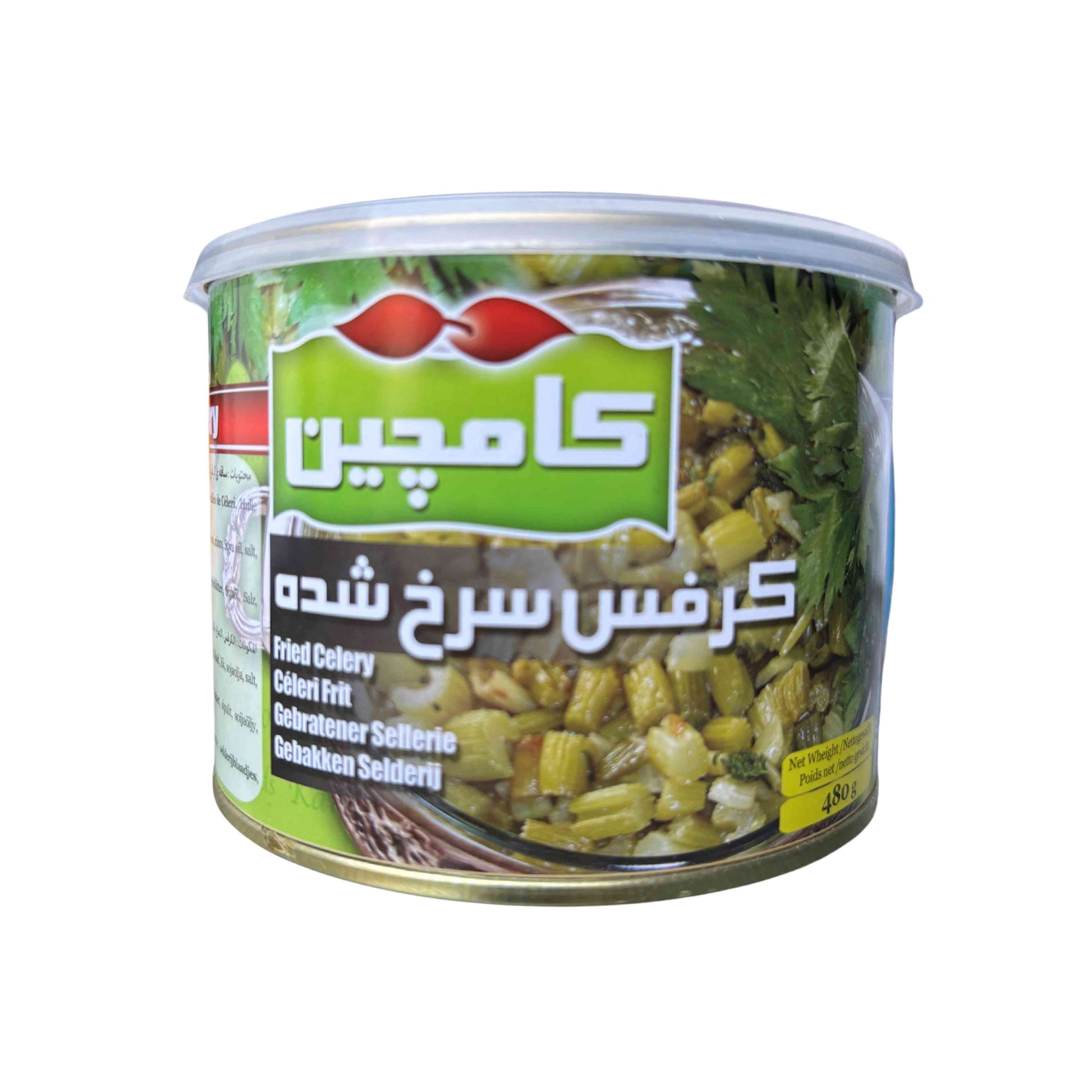 Das aromatische Selleriegericht von Kamchin (Iran) besteht aus gebratenen Selleriestücken, Minze, Petersilie und Sellerieblättern – traditionell zubereitet und in Öl konserviert. Es eignet sich ideal als Beilage, Kochzutat oder als Basis für herzhafte persische Gerichte wie Khoresht-e Karafs (Sellerie-Eintopf). Die Packung enthält 480g.