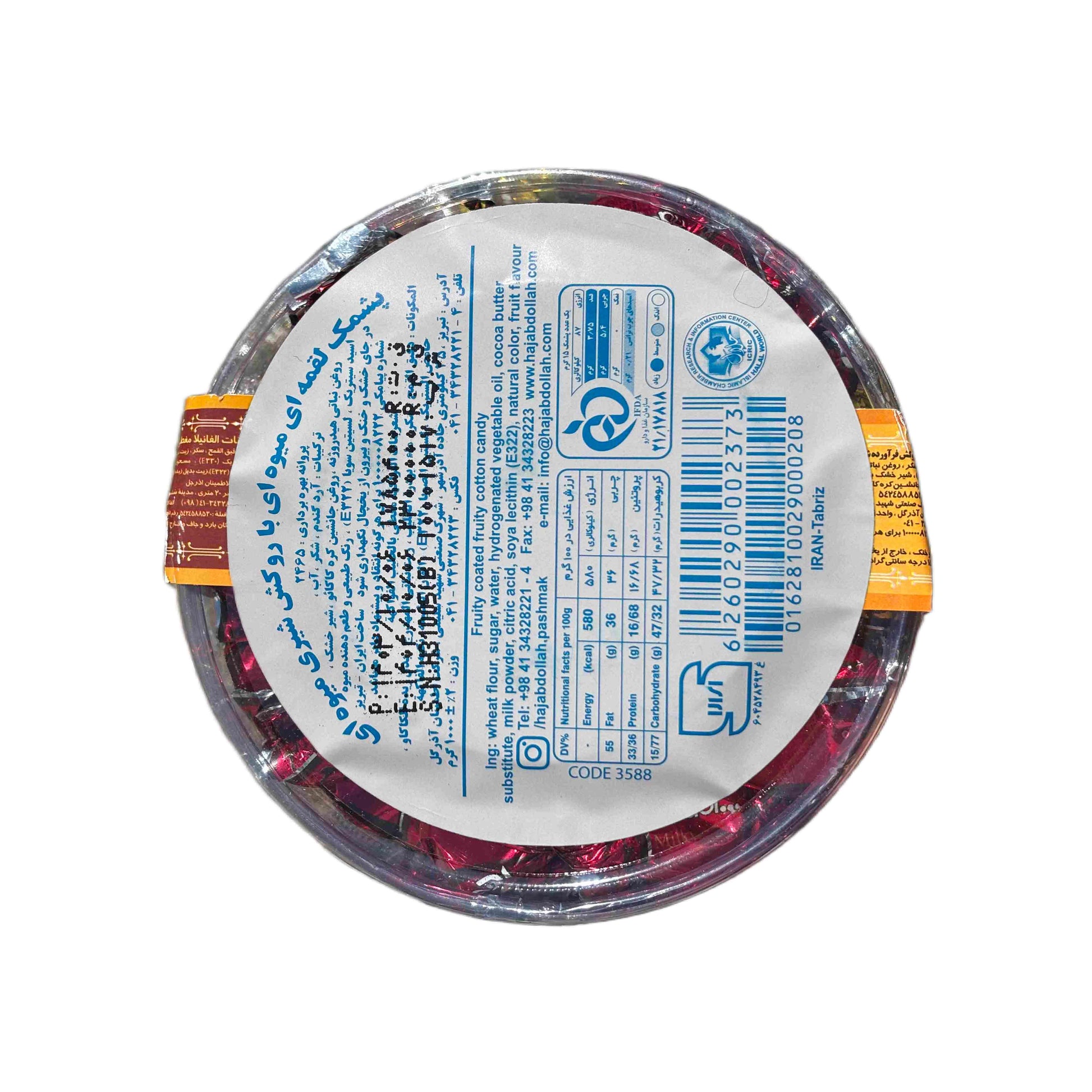 Diese gefüllten Fruchtbonbons stammen von der Traditionsmarke Hajabdollah (gegründet 1955). Die Bonbons kombinieren eine glänzende Zuckerschicht mit einer weichen Fruchtfüllung. Sie sind in verschiedenen Sorten erhältlich und eignen sich perfekt als Gastgeschenk oder süße Aufmerksamkeit. Die Packung enthält 1000g.