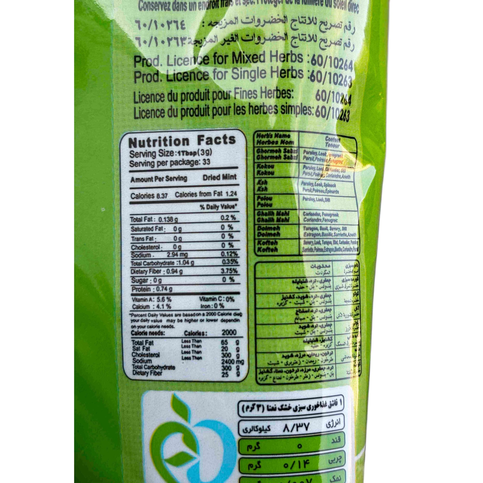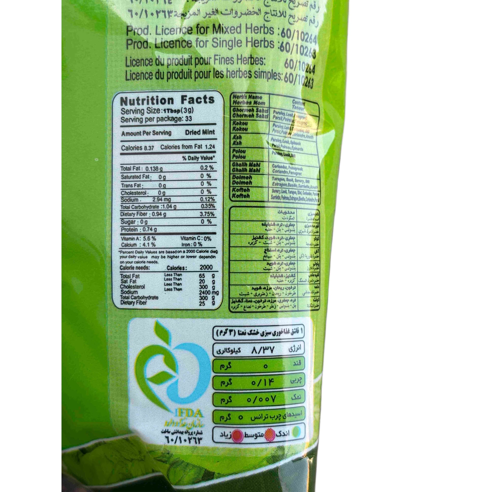 Diese getrocknete Minze (Mentha) stammt aus Neyshabur, einem der bedeutendsten Kräuteranbaugebiete im Iran. Die Blätter werden schonend geerntet, gereinigt und luftgetrocknet, um ihr volles, natürliches Aroma zu bewahren – ohne Zusatzstoffe, rein natürlich. Die Packung enthält 100g.