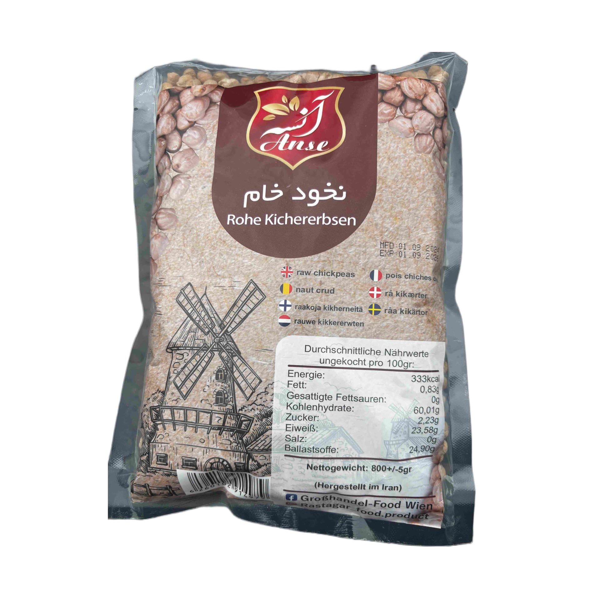 Diese rohen Kichererbsen stammen aus dem Iran und sind ein vielseitiges, pflanzliches Grundnahrungsmittel. Sie eignen sich hervorragend für Hummus, Eintöpfe, Currys, Salate oder als knuspriger Snack nach dem Rösten. Die Packung enthält 800g.