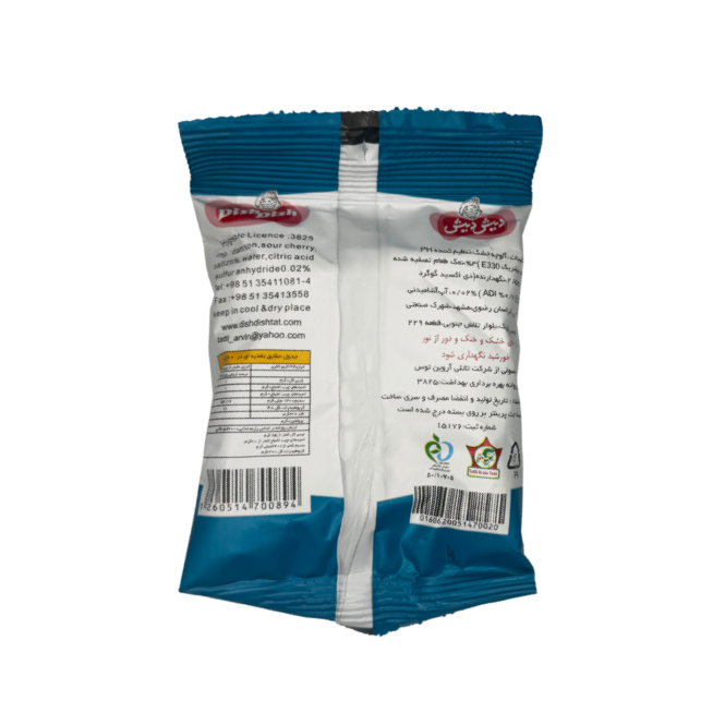 Sauerkirschen (Damson/Sour Cherry), Wasser, Zitronensäure (E330), Salz (bis zu 7 %), Schwefeldioxid (E220, < 0,5 %).
